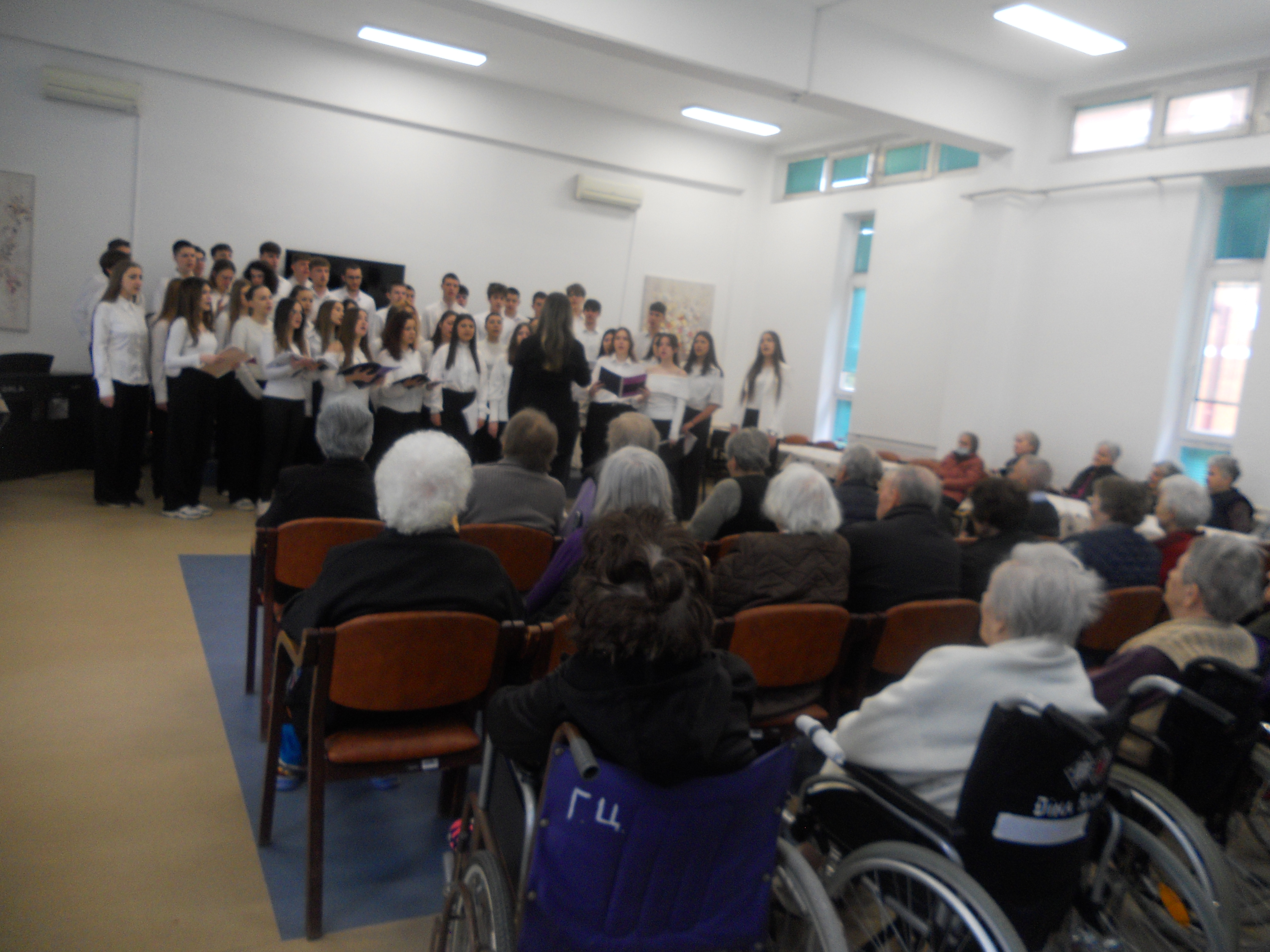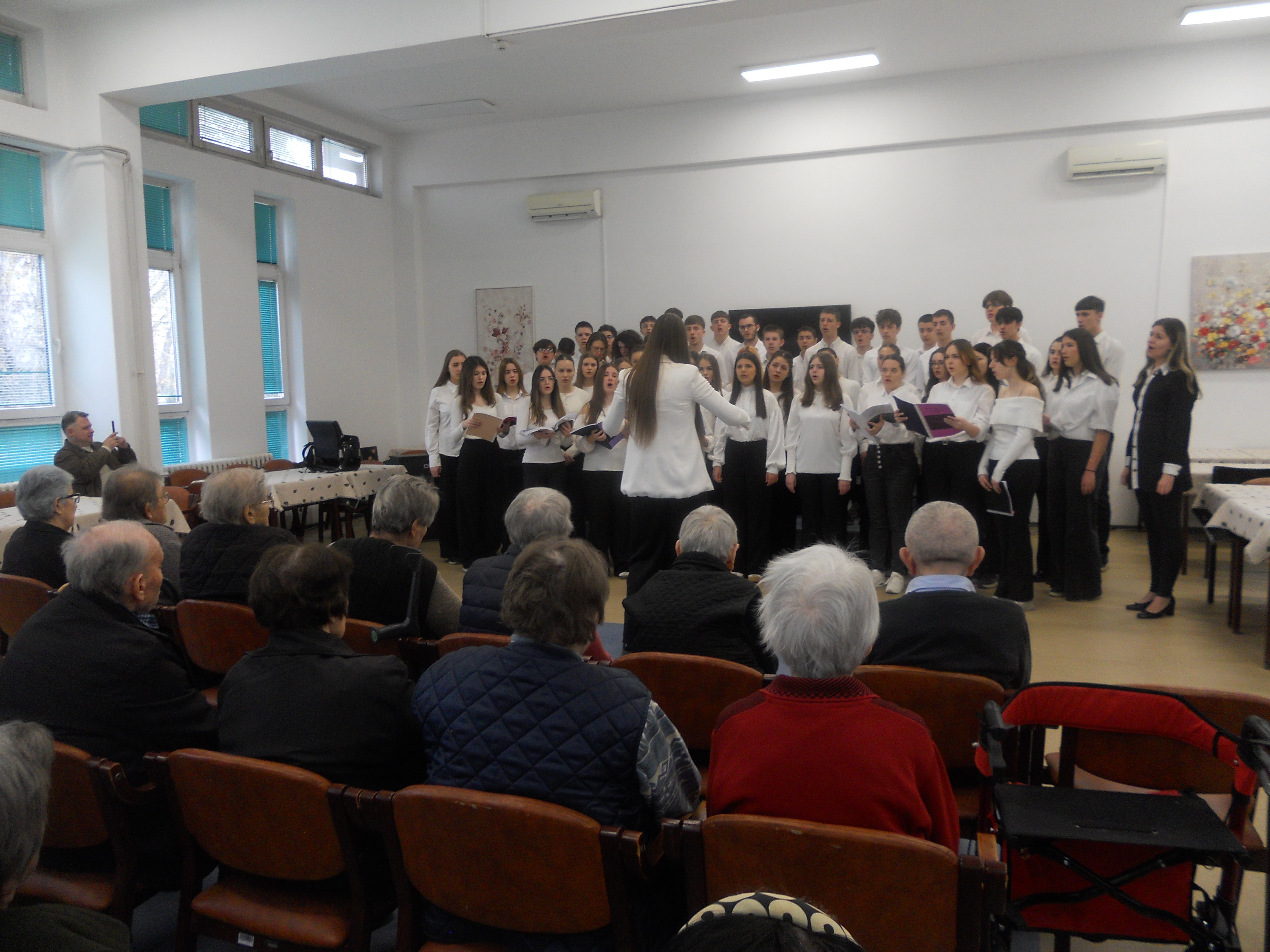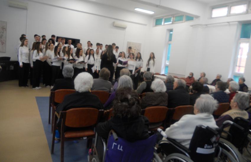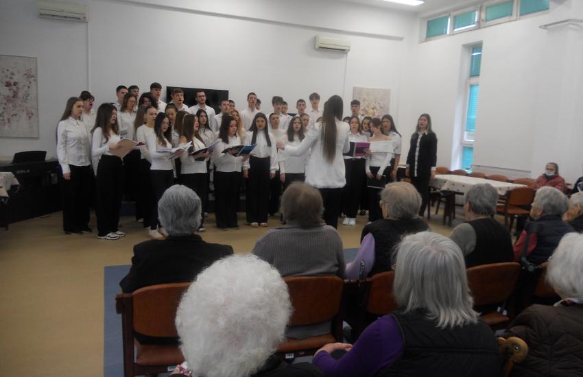 Поводом значајног јубилеја своје установе, чланови Хора Музичке школе у Нишу, предвођени професорком Милом Пузић, приредили су незабораван наступ за кориснике Геронтолошког центра.