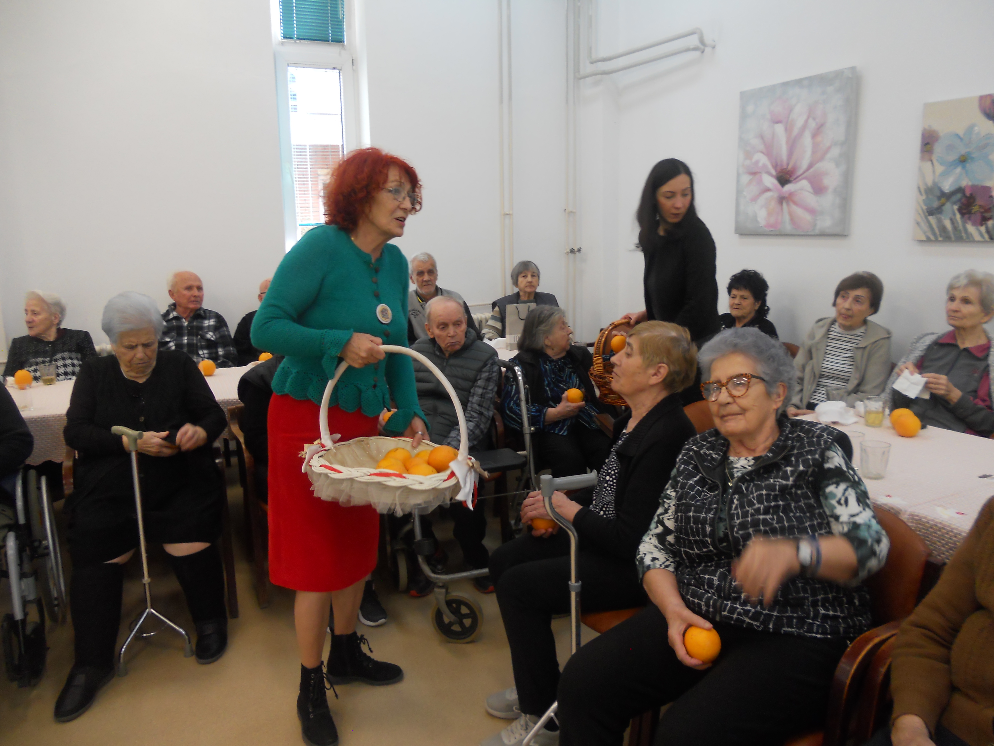 Поред програма, сестре су овај пут обрадовале кориснике и практичним и топлим поклоном – ручно плетеним вуненим чарапама. Као и увек, уручиле су им и свеже воће, као симбол пажње и бриге за њихово здравље.
